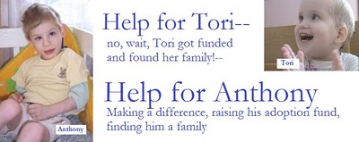 Now that Tori’s adoption fund is fully funded and she is in the process of