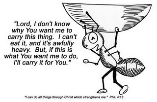 The story doesn’t end there. Brenda’s father is a cartoonist. When she told him the incredible story of the ant, the prayer, and the contact lens, he drew a cartoon of an ant lugging that contact lens with the caption, ‘Lord, I don’t know why you want me to carry this thing. I can’t eat it, and it’s awfully heavy. But if this is what you want me to do; I’ll carry it for you.’